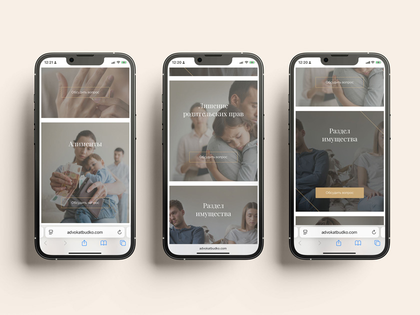 Вызов: Для адвоката, чья практика построена на доверии и человеческих отношениях, требовалось создать не просто сайт-визитку, а убедительное онлайн-продолжение её экспертизы. Задача — визуально передать профессионализм, чуткость и надёжность, чтобы потенциальные клиенты чувствовали уверенность при первом же контакте.